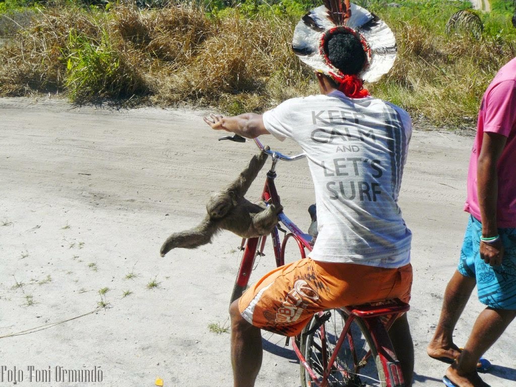 INDÍGENAS DA ALDEIA MATA MEDONHA LIBERAM BICHO PREGUIÇA NA FLORESTA