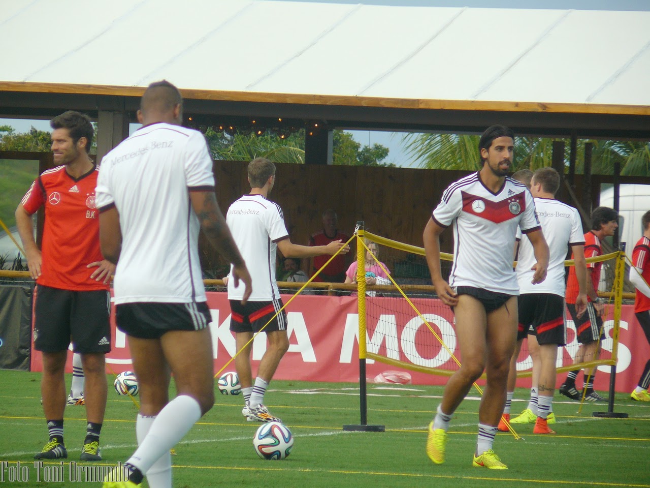 Hoy, último día en este lugar de veraneo, en la municipalidad de Santa Cruz Cabralia, los alemanes entrenaron a las 10. En la conferencia de prensa, se presentaron Müller, el capitán Philipp Lham y el manager Oliver Bierhoff.