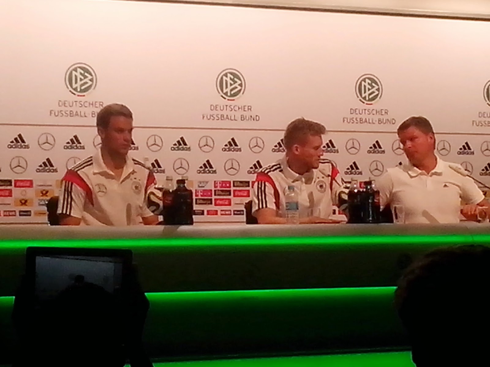 A seleção da Alemanha está confiante, preparada e ansiosa por jogar no mítico estadio Maracaná, no Rio de Janeiro, declararam este meio-dia o goleiro, Manuel Neuer, e o meio campo André Schürrle. Está confirmado que Mustafí permanecerá nesta vila, pois continua em tratamento com dolores musculares, no entanto que Müller ainda está com febre e se recupera, com esperanças de participar do jogo da próxima sexta feira.