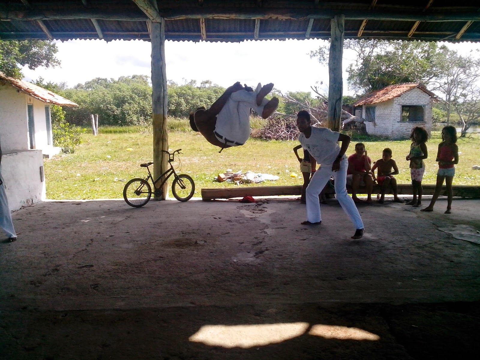 Houve aula, roda, atabaque, pandeiro, berimbau, e no fim, banho reparador no maravilhoso Rio Santo Antônio.