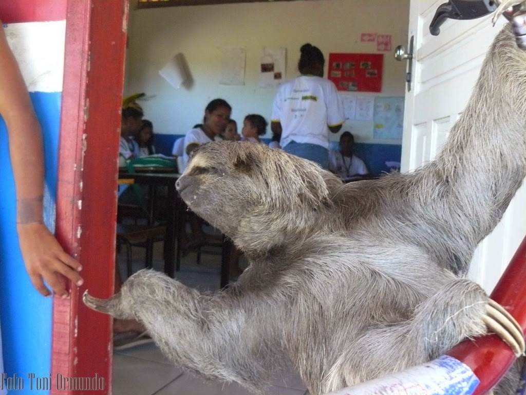 Foi o dia em que os índios pataxó da Mata Medonha liberaram um bicho preguiça que dias atrás haviam achado na estradinha de chão de acesso a aldeia, fragilizado e com sinais de fraqueza.