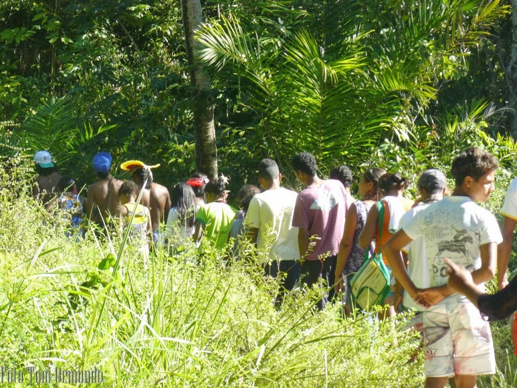 Era o momento ideal, pois jovens desta aldeia, localizada no município de Santa Cruz Cabrália, e da aldeia Caramuru, de Pau Brasil, passaram este fim de semana juntos, em um encontro de intercambio, compartindo brincadeiras, danças de toré, conversas arredor da fogueira e reflexões sobre "a massacre da conquista que destruiu nossos povos mas não conseguiu acabar com nossa cultura, que estamos resgatando juntos".